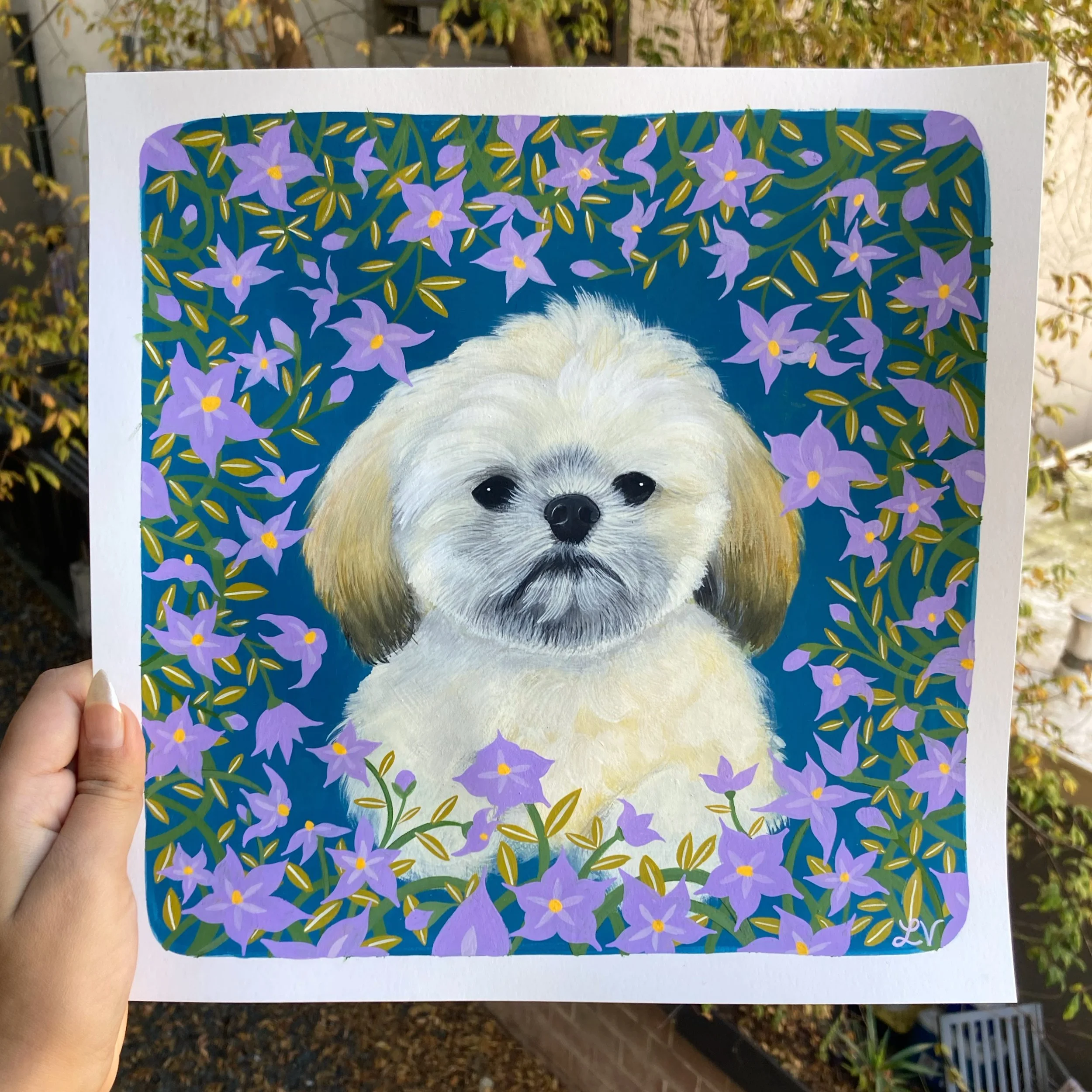 All pet portraits are custom 8” x 8” gouache paintings for $300, plus shipping.